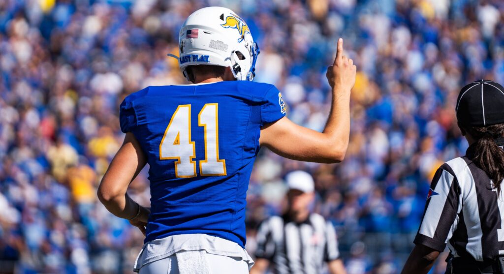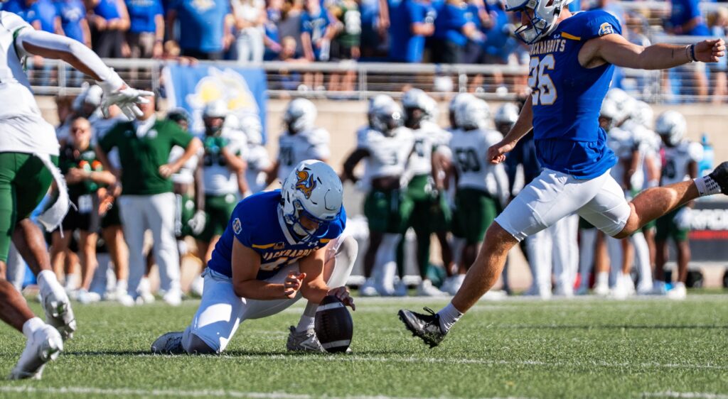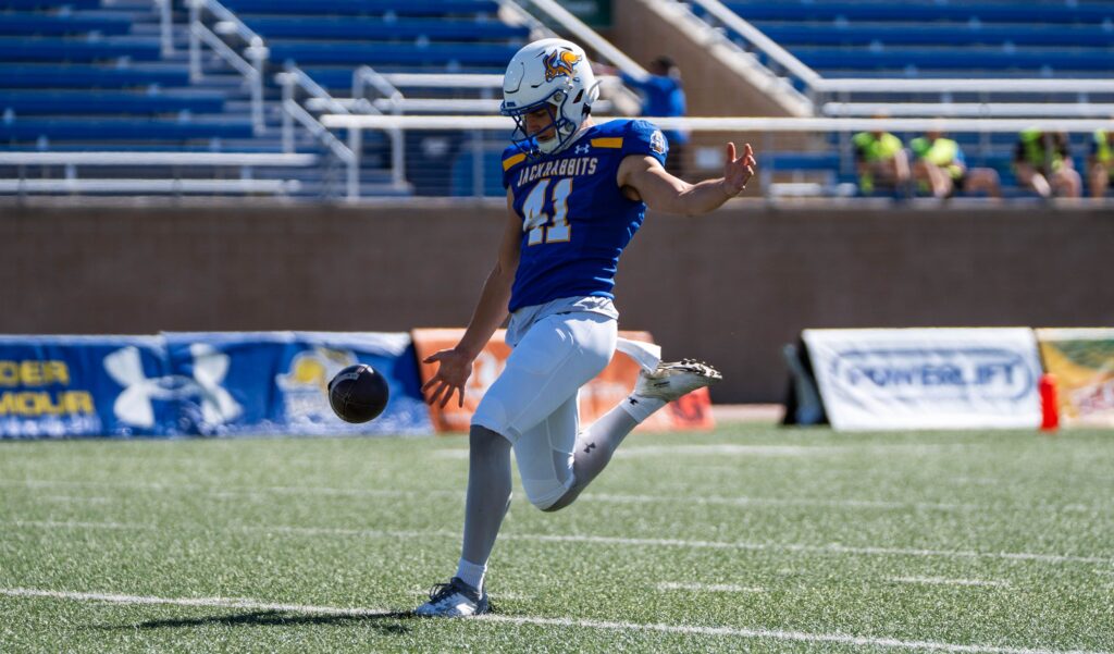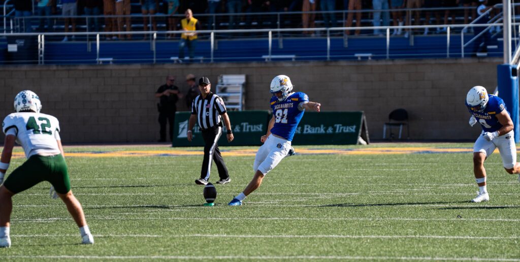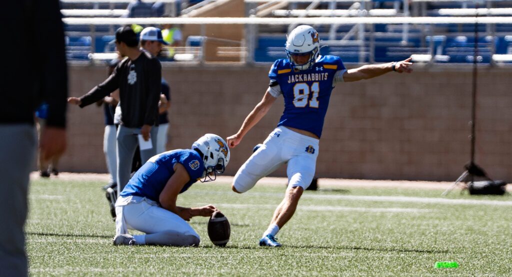 Now in his final season, Pelham is handling punting duties as well as holding for field goal and PAT attempts. He’s netted 10 punts for 468 yards so far in his Jackrabbits career.