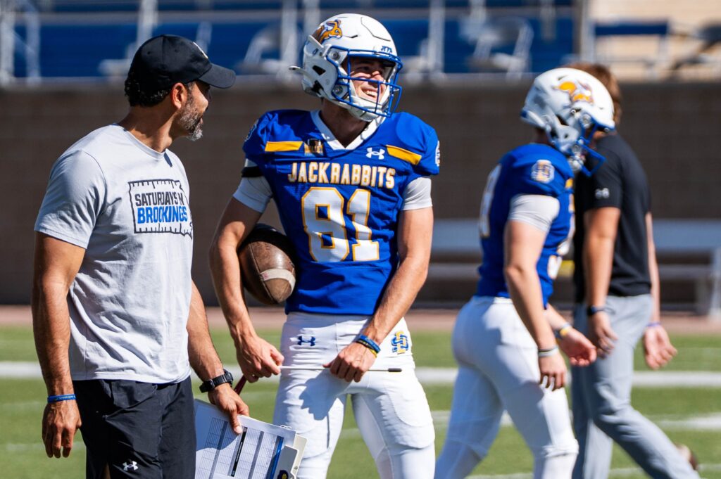 “This place matches my energy and me as a person, and I wouldn’t want to play for anyone other than Dan Jackson,” Pelham said. “He’s a fantastic head coach, so personable, he cares about me and my interests and making me a better person. Hats off to (special teams coordinator) Isaiah Jackson, too. He hit me up during the coaching transition and assured me that everything was ok. I really wouldn’t want to be anywhere other than Brookings and playing for these guys.”