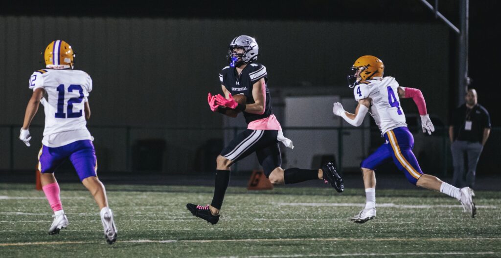 Early in the fourth quarter, Centennial extended its lead to 26-15 on a 54-yard pass from Miller to Morgan. The ball was tipped by Indianola defender Max Walljasper before falling into the hands of Morgan, who then broke a tackle and raced to the end zone.