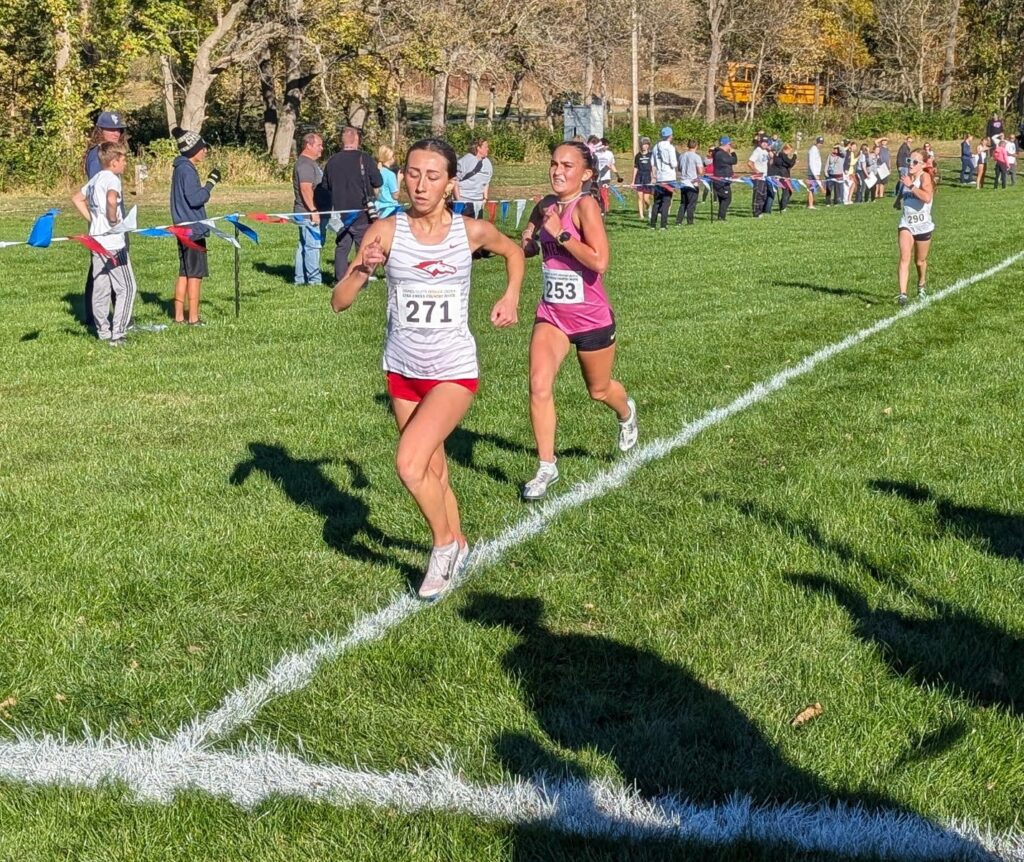 “Trinity ran very well after the week off at conference, making a couple of late passes,” Cogdill said. “Sammi was with her most of the race–she is nursing a rolled ankle from the CIML meet and pushing off was uncomfortable at times, but she was much improved over the past week. Those two played a big role in determining the third-place team. Finish 10-15 seconds faster and they bump Norwalk back, and finish 10-15 seconds slower and Des Moines Roosevelt moves up. Both scenarios would have led to Roosevelt taking the last team qualifying spot away from Norwalk, a margin that was decided by just two points.”