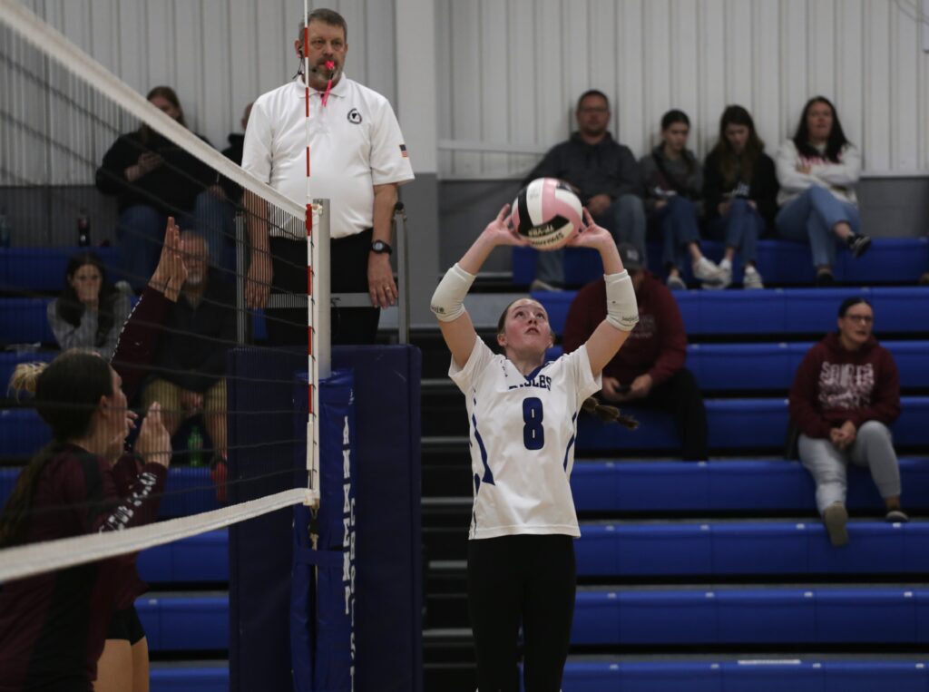 The seventh-ranked Eagles cruised to a 25-13, 25-10, 25-13 victory over visiting Martensdale-St. Marys in a Class 1A regional quarterfinal on Wednesday. The Blue Devils scored a total of 36 points in the match–just 10 more than Melcher-Dallas managed to score in a first-round loss at ACA on Monday.