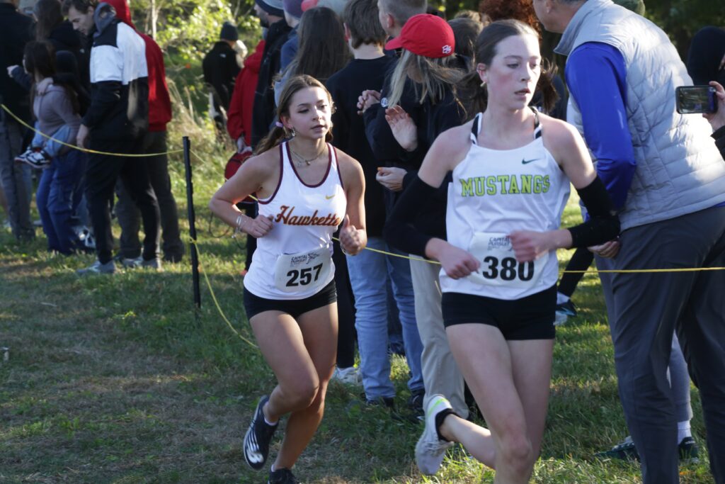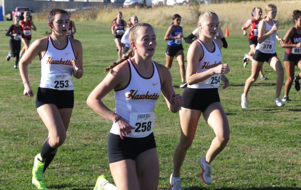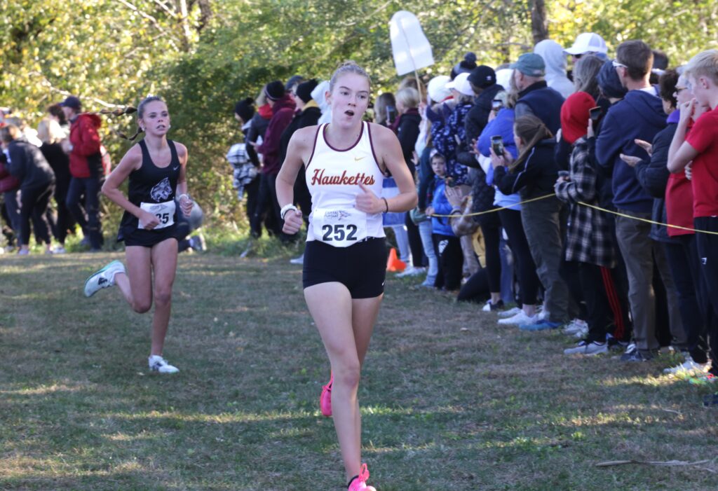 Ivy Wiegand placed 31st for the Hawkettes in 20:44, and Reagan Prendergast took 35th in 21:20. Another senior, Ainsley Kiene, was running well before she took a tumble and did not finish the race.