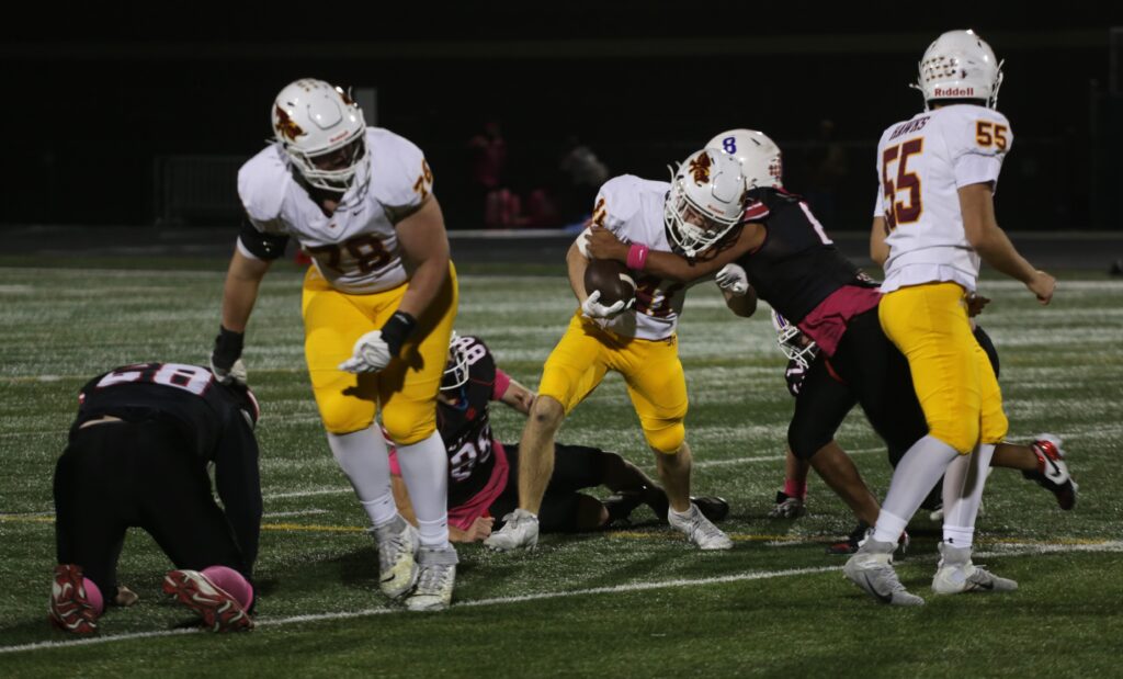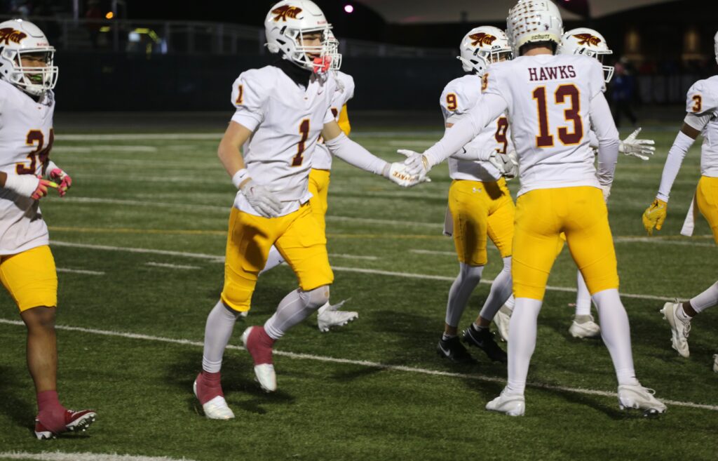 Star running back Daniel Larmie watched the final two periods from the sideline after scoring two of the Hawks’ first three touchdowns. He entered the night with 203 carries on the season.