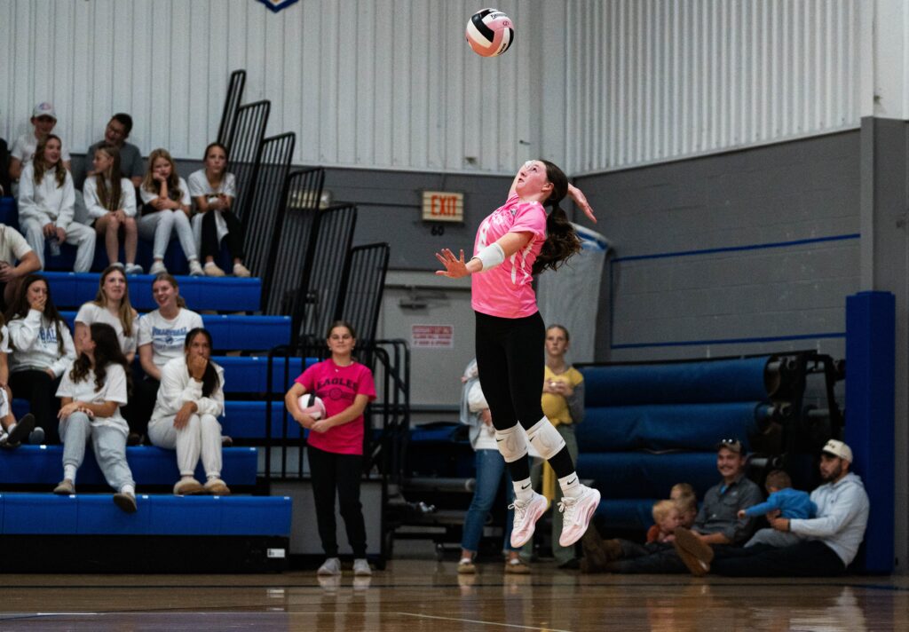 That momentum transitioned right into the start of the second set where the Eagles went on an 8-1 run spearheaded by freshman Havanna Dolbeare, Leever and some strong serving from freshman Avlyn Davis.