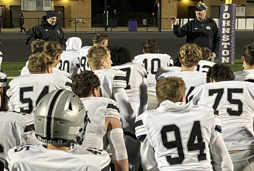 Johnston (8-2) advanced to the quarterfinals behind junior quarterback Trevin Helming, who completed 17-of-19 passes for 216 yards–many of them resulting in key third-down conversions. He threw for one touchdown and ran for another.