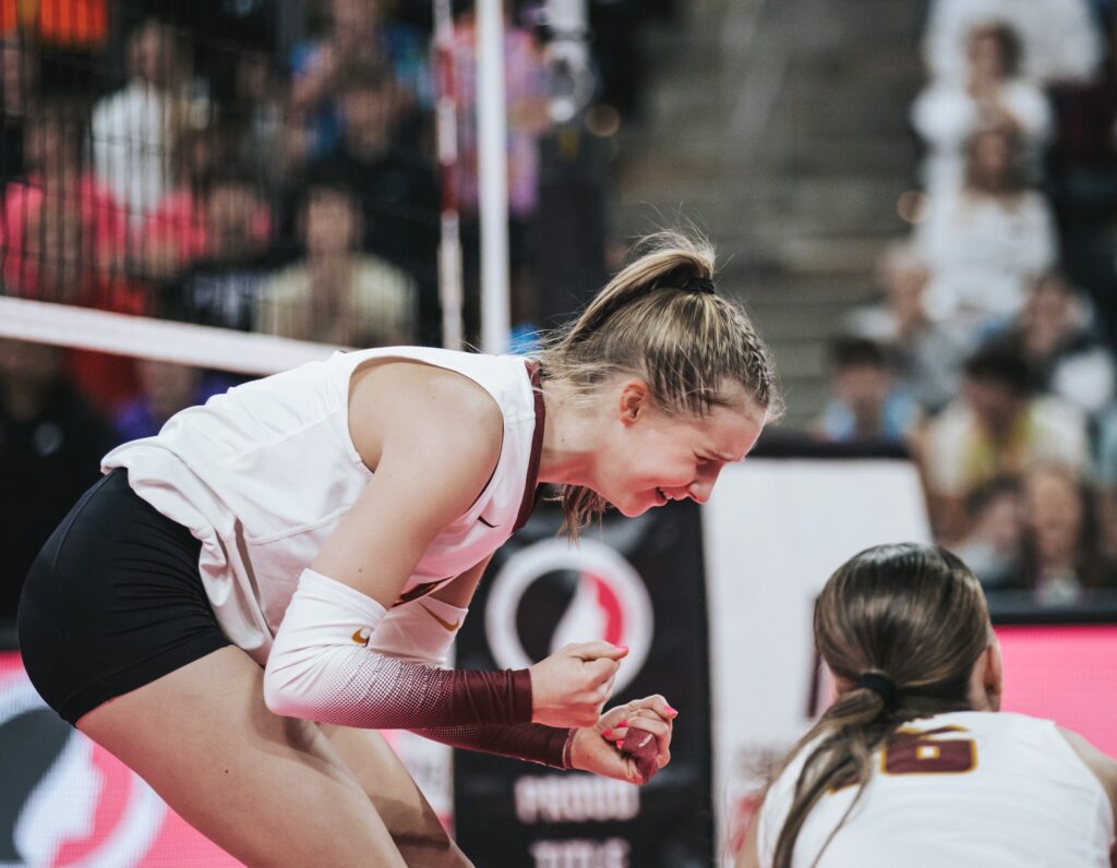 “I think we always knew if we kept pushing every point and playing with each other and for each other that we could finish it,” said Steinkamp, who finished with 25 assists. “Our passing was really great, and that set it up nice for our hitters to execute.”