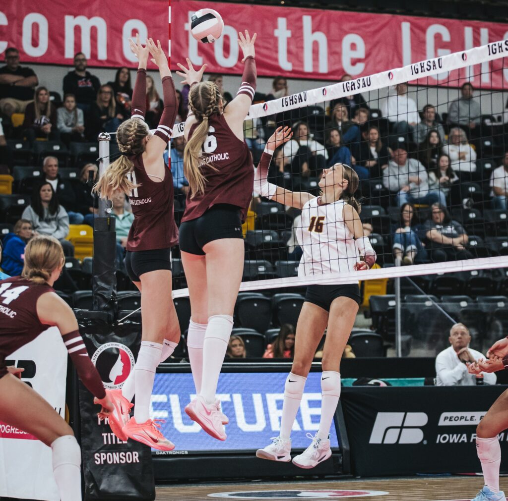 Roush put the ball down to give the sixth-ranked Hawkettes a thrilling five-set victory over No. 5 Dowling Catholic in a matchup of CIML Conference rivals and state tournament veterans. They won by scores of 18-25, 25-17, 17-25, 25-17, 15-11.