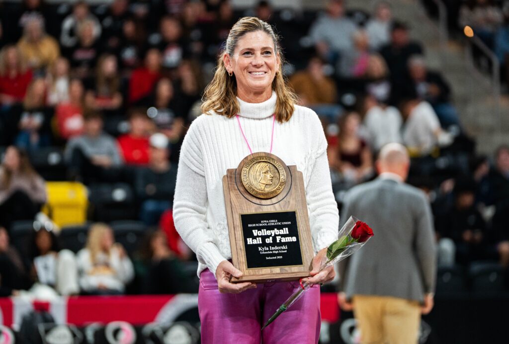 Former Urbandale star Kyla Inderski was inducted into the Iowa Girls’ High School Athletic Union Volleyball Hall of Fame on Thursday during the state tournament at Xtream Arena in Coralville.