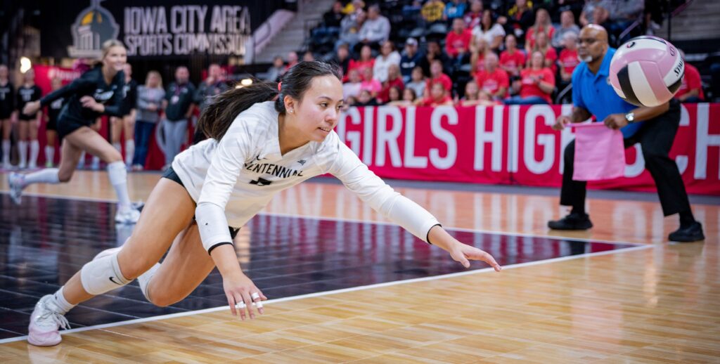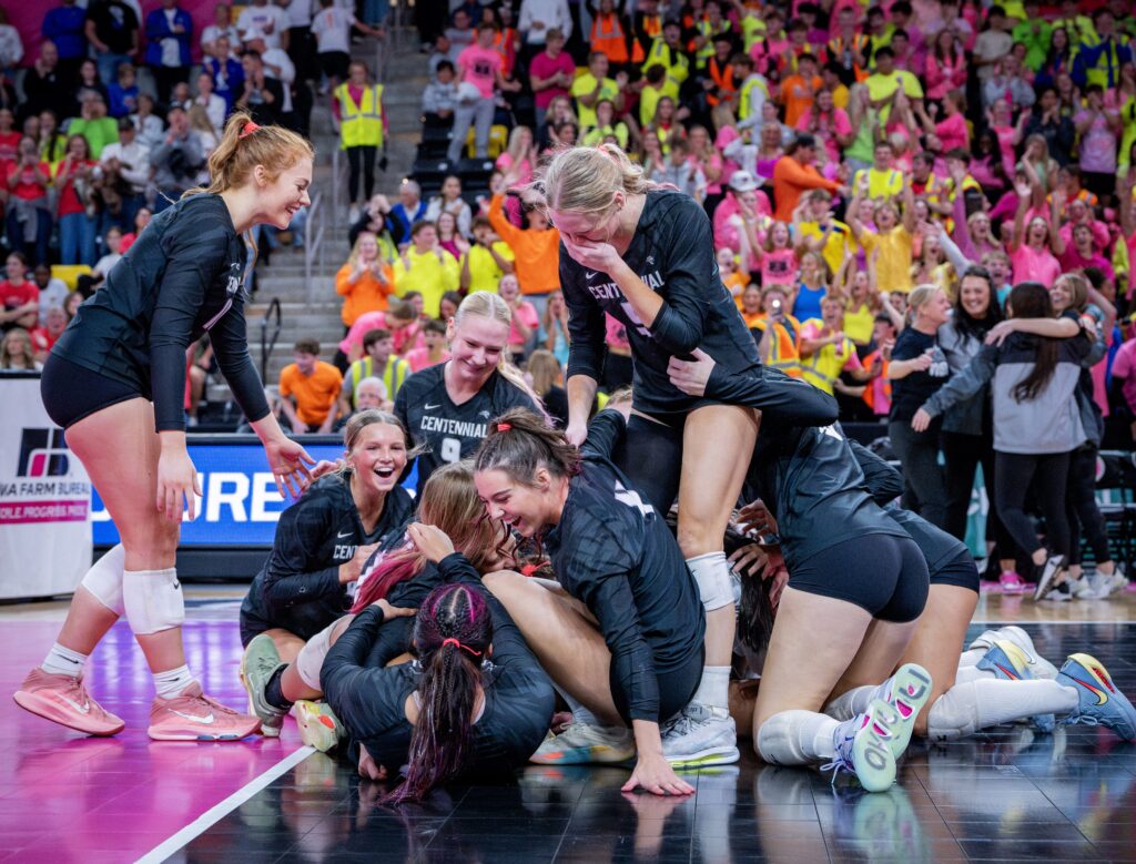 “It feels great,” Centennial coach Jessica Rinehart said after her team’s 25-18, 25-19, 25-20 victory. “It’s hard to do. We’ve been down here enough to know that, so I was really proud of our girls.”