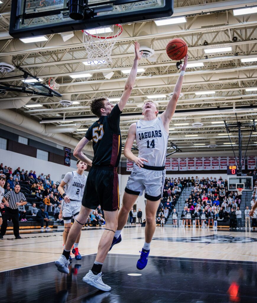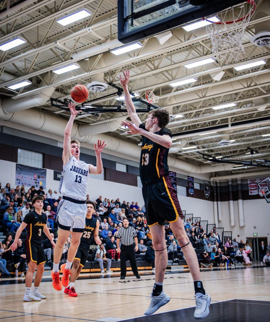 Centennial responded with a 10-2 run of its own, tying the game at 10-10 on a pair of 3-pointers by Luke Mitchell. Mitchell scored all eight of his points in the first half, including a rebound basket with 40 seconds left to give the Jaguars a 27-26 halftime lead, and finished with a team-high six rebounds.