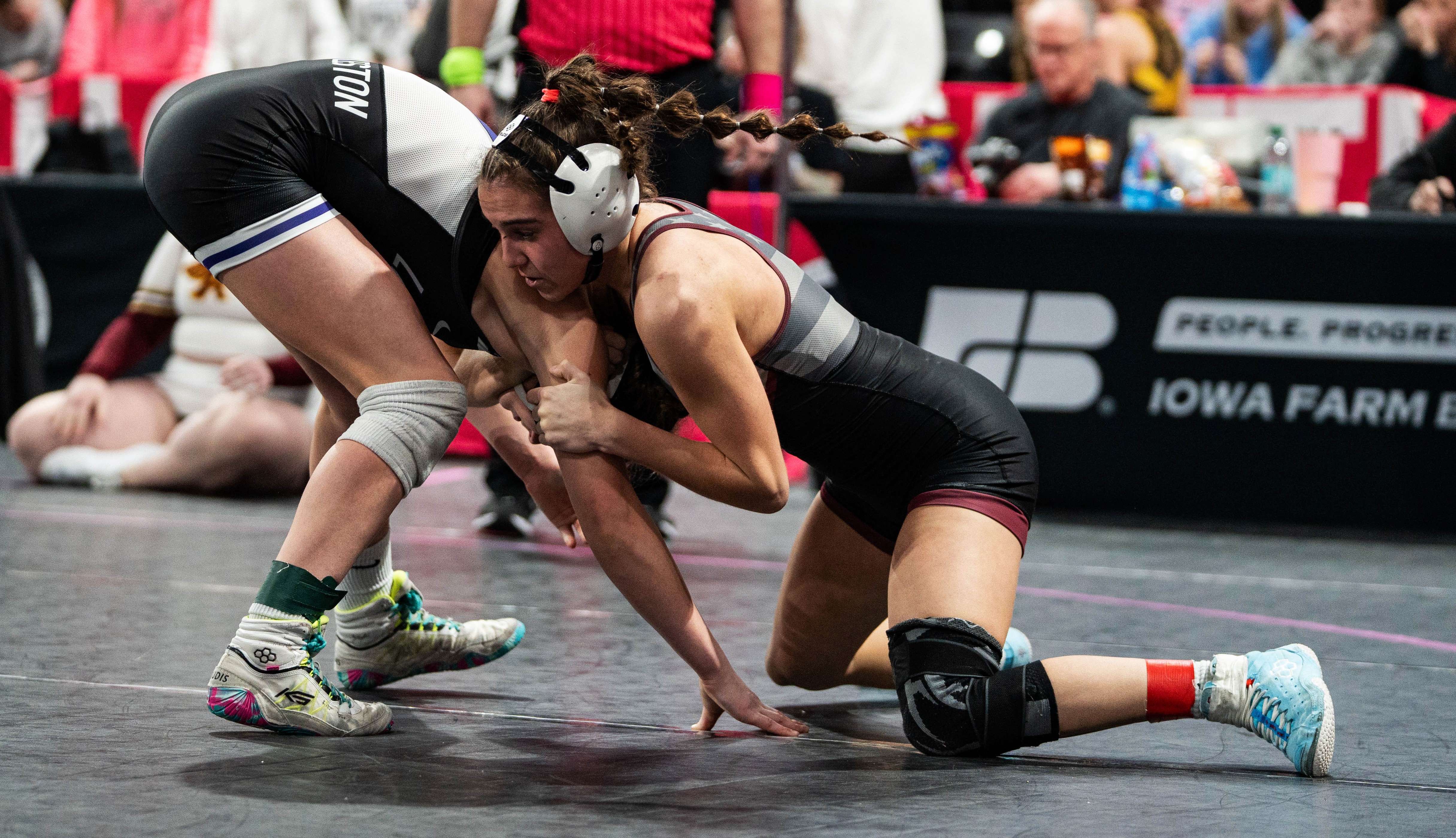 She lost by a 10-0 major decision to eventual runner-up Kate Seery of Linn-Mar in the semifinals, but turned it around to reach the third-place match by posting a fall over Spencer’s Jada Mingus-Alfaro in the consolation semifinals.