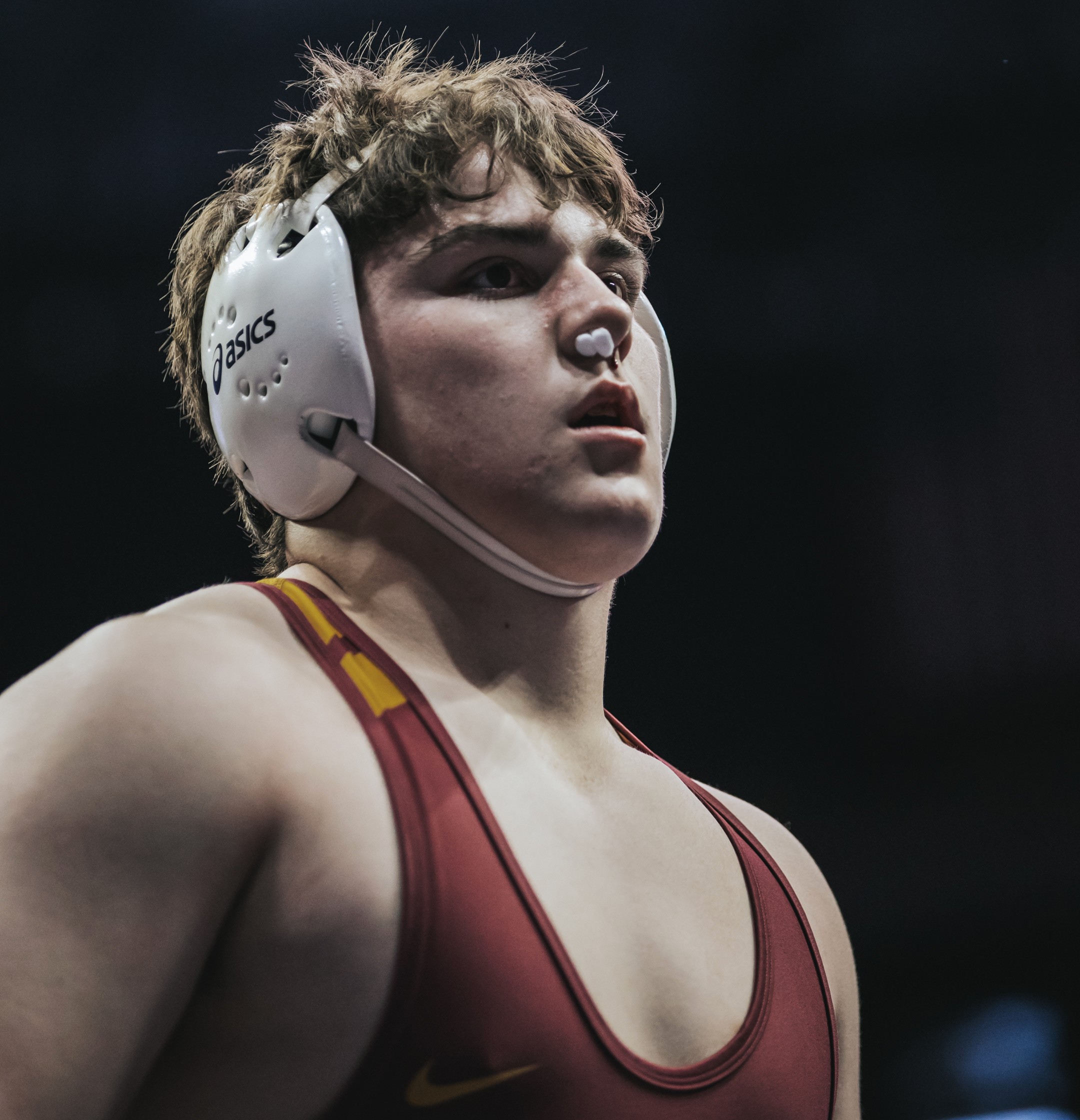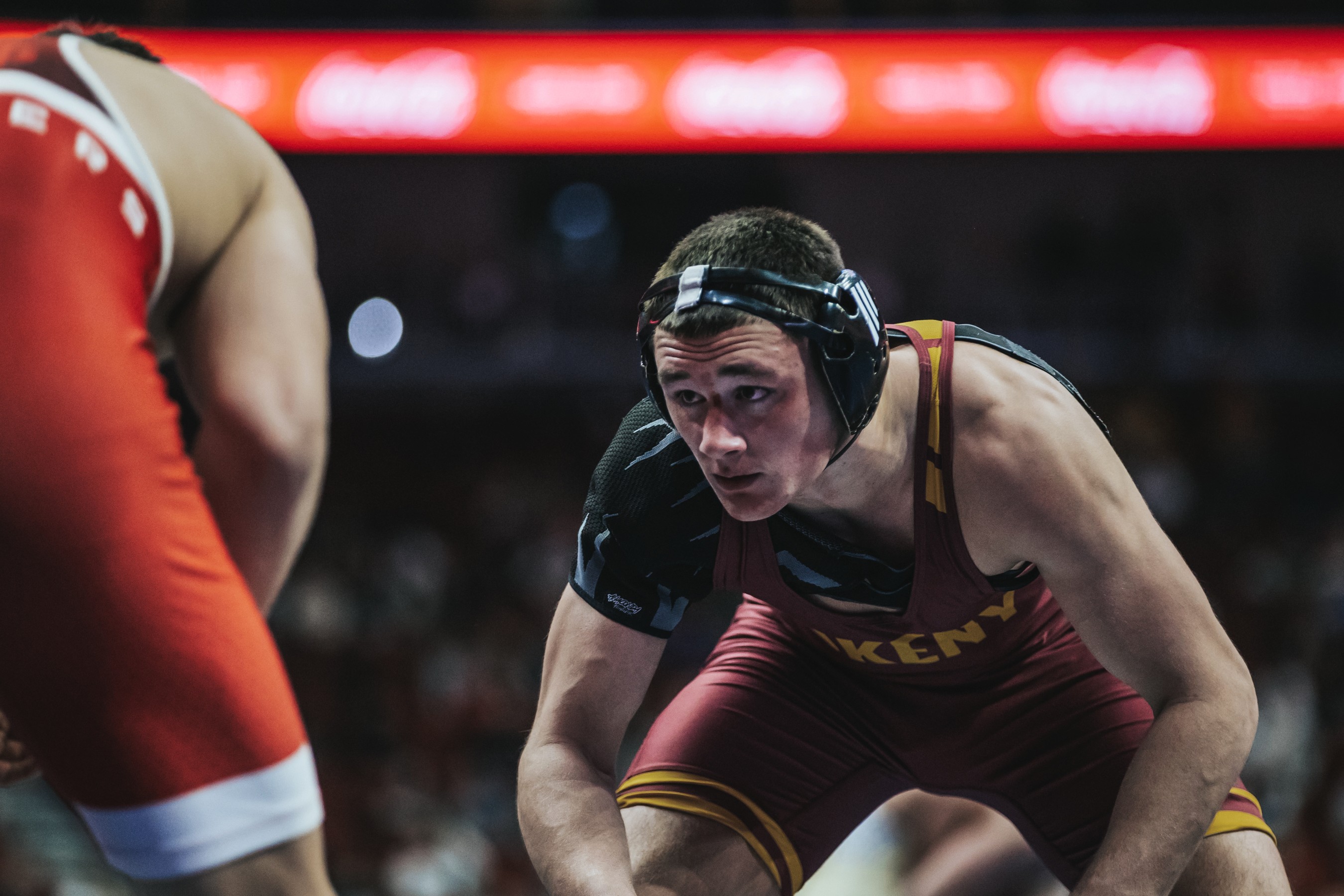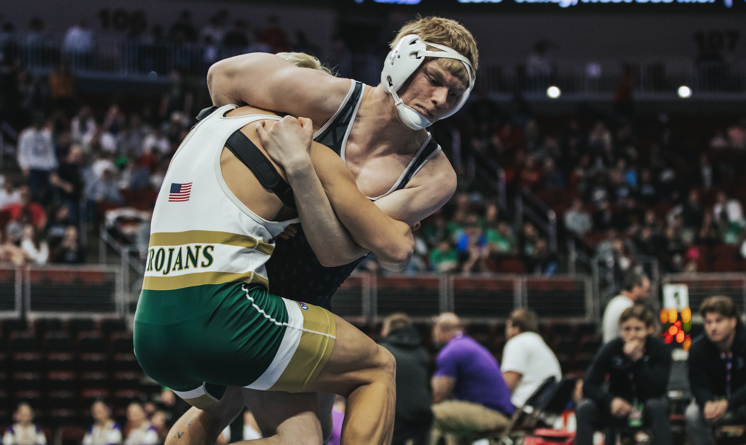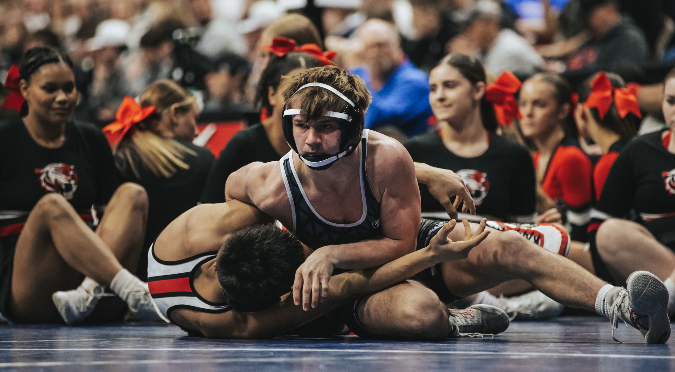 The No. 3 Rathjen held a 4-0 lead over No. 14 Kayden Crispin of Waukee after the first two periods. He then used two takedowns and a near-fall to extend the margin to 13-1 before pinning Crispin in 5:56–with just 4 seconds left in the match.