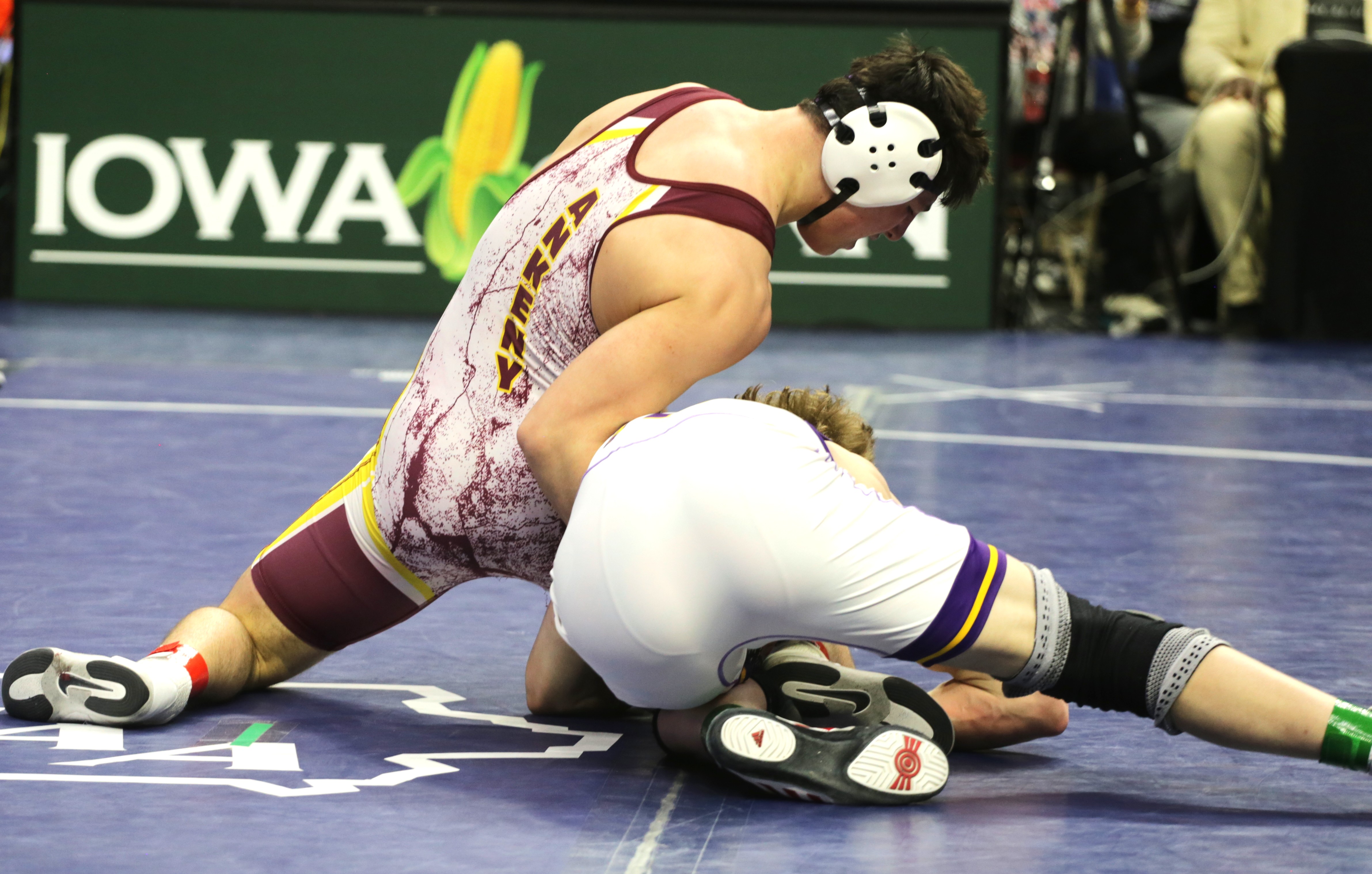 When Ankeny sophomore Calvin Rathjen and Indianola junior Mac Crosson battled for the Class 3A 165-pound championship on Saturday night at the Casey’s Center, both competitors knew that one takedown–or one mistake–could decide the match.