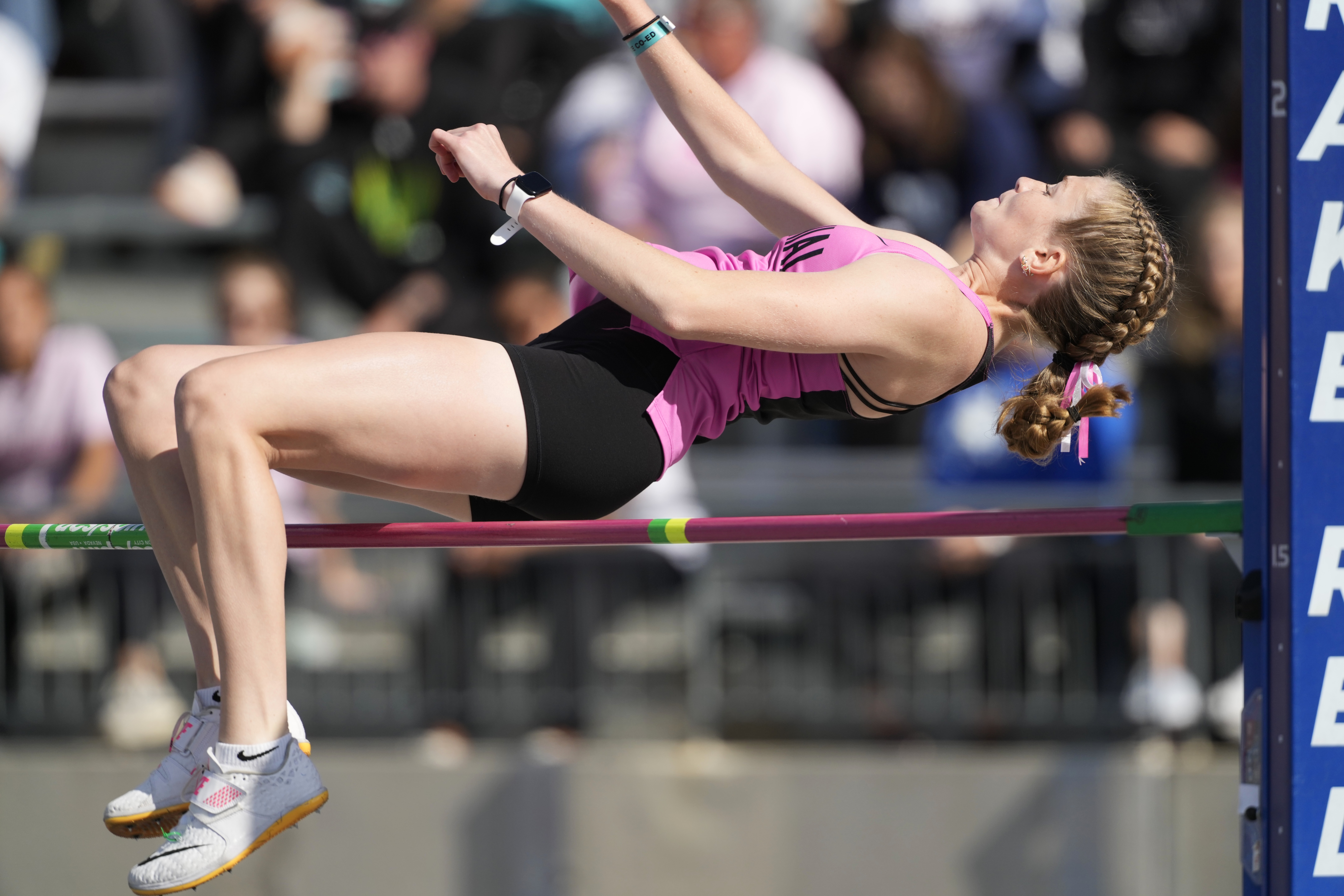 Woods ran on the shuttle hurdle relay that placed eighth at state in a time of 1:04.20. She also ran on the 11th-place 4×200 relay that set a school record of 1:44.15.