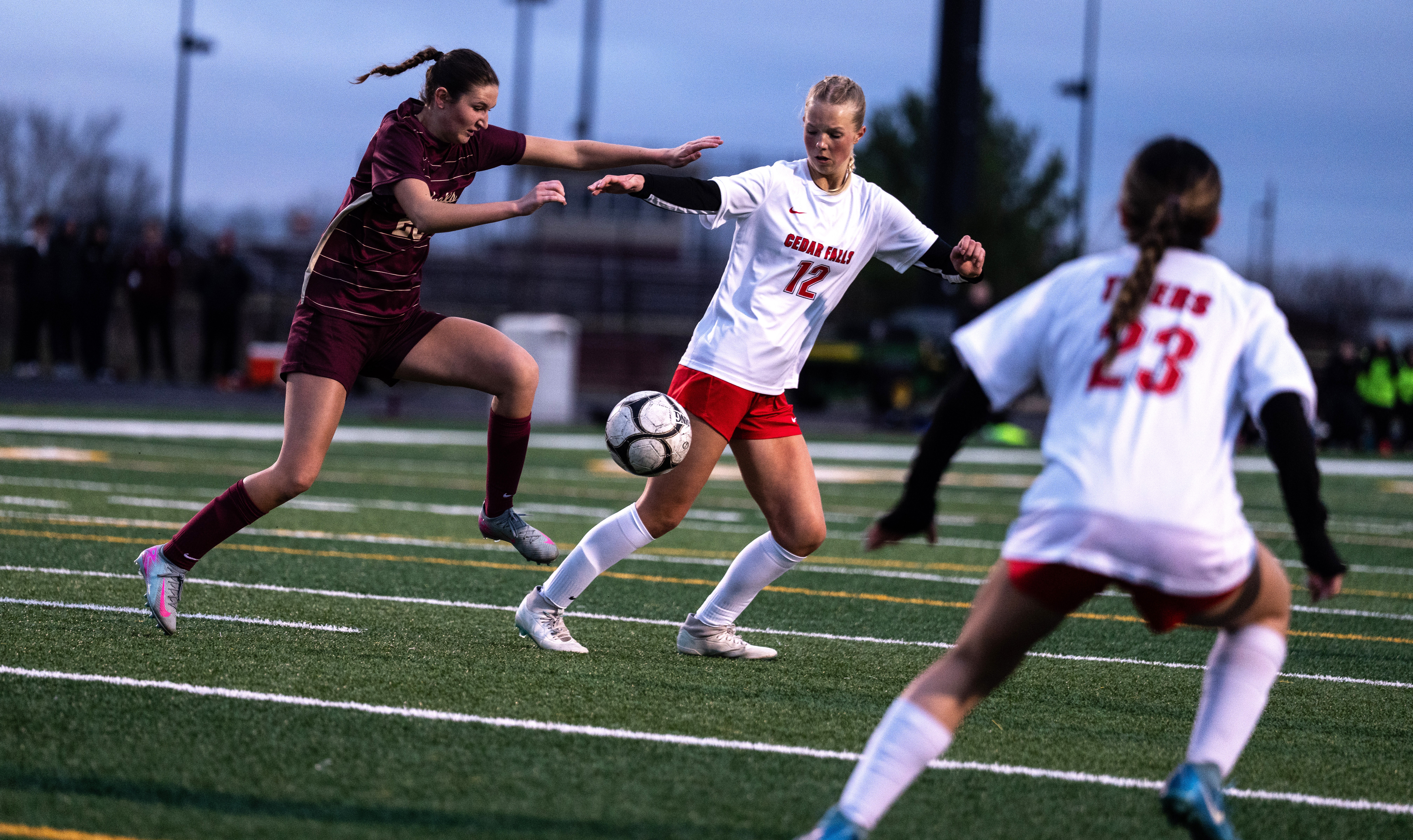 “After watching film from last year, we knew what we needed to do, so one of our main focuses was getting our shots in the air and placing them high where it’s harder for her to reach,” Paoli said of standout Cedar Falls goalkeeper Alexis Montgomery. “We also really emphasized creating space, moving the ball quickly, and taking quality shots instead of rushing knowing we might have more time. Overall, it was about staying composed, trusting our preparation, and being confident when we got our chances.”
