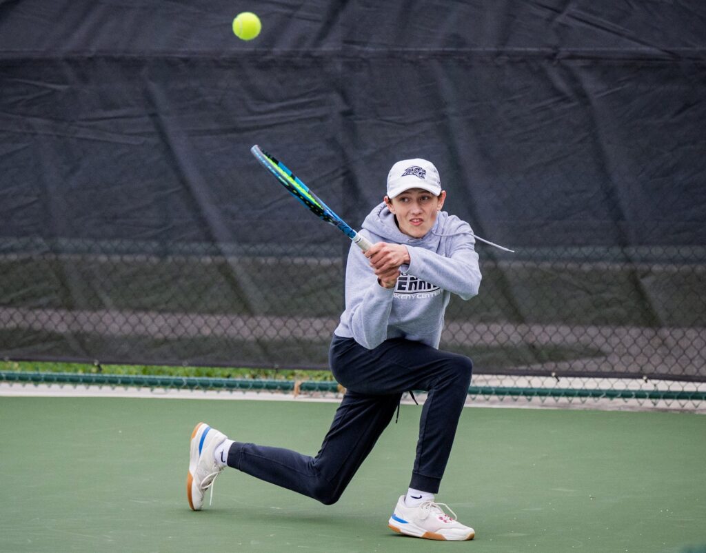 The Jaguars also took four of the five doubles matches–three of them in straight sets. The No. 2 doubles team of Reece Dickinson and Nathan Goff prevailed in three sets after dominating the super-tiebreaker, 10-3.