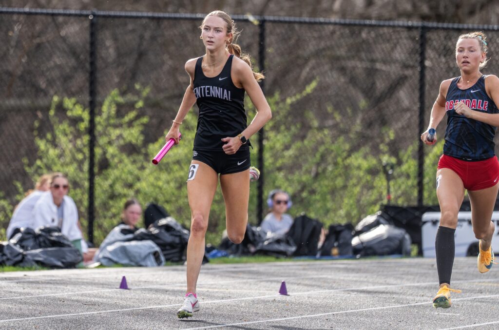 Centennial also met the Blue Oval standard in the shuttle hurdle relay. The quartet of Ava Barten, Siena Peddicord, Taylor Gilbreaith and Anna Woods placed third in a time of 1:04.46.