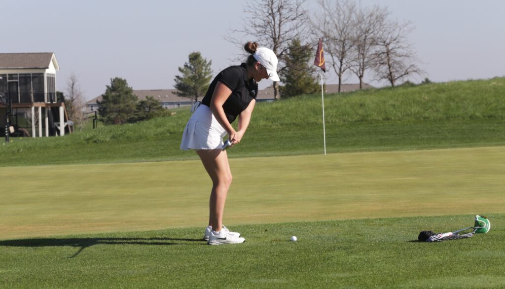 Kiepe’s Ankeny Centennial squad placed sixth in the 12-team field with a 387 total. The Jaguars took advantage of the sunny skies and temperatures in the 70s after dodging the rain on Wednesday, when they played on a soggy Blank Golf Course and shot a 200 at a nine-hole triangular.