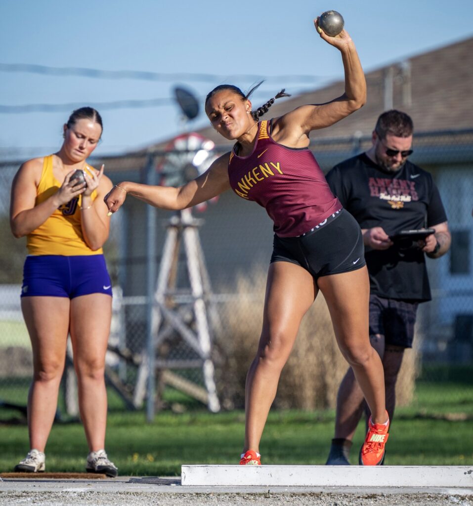 Bella Anderson took the discus with a throw of 120-7. Ankeny’s Maliya Cobb was second in that event with a toss of 117-7.