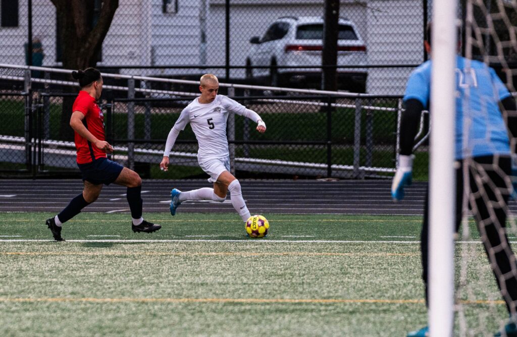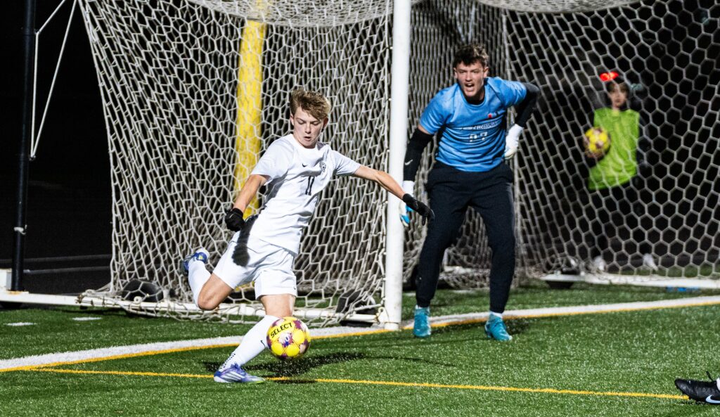 Leading scorer Zack Jakobitz was able to lift his leg high enough to tap in a rebound shot after the corner kick to tie things up.