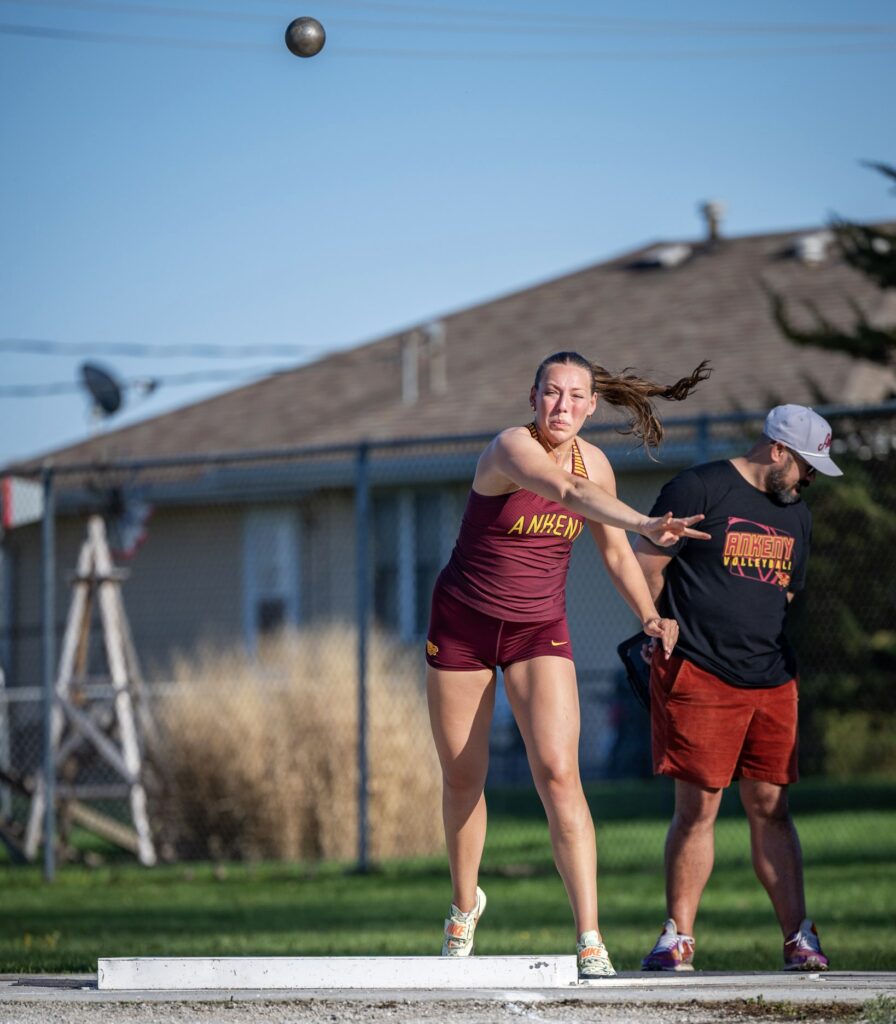 Ankeny’s top finishes came in the throwing events. Gwyn Christensen placed third in the shot put with a throw of 35-9.5, while Emerson Hutchins took fourth in the discus with a toss of 100-0.