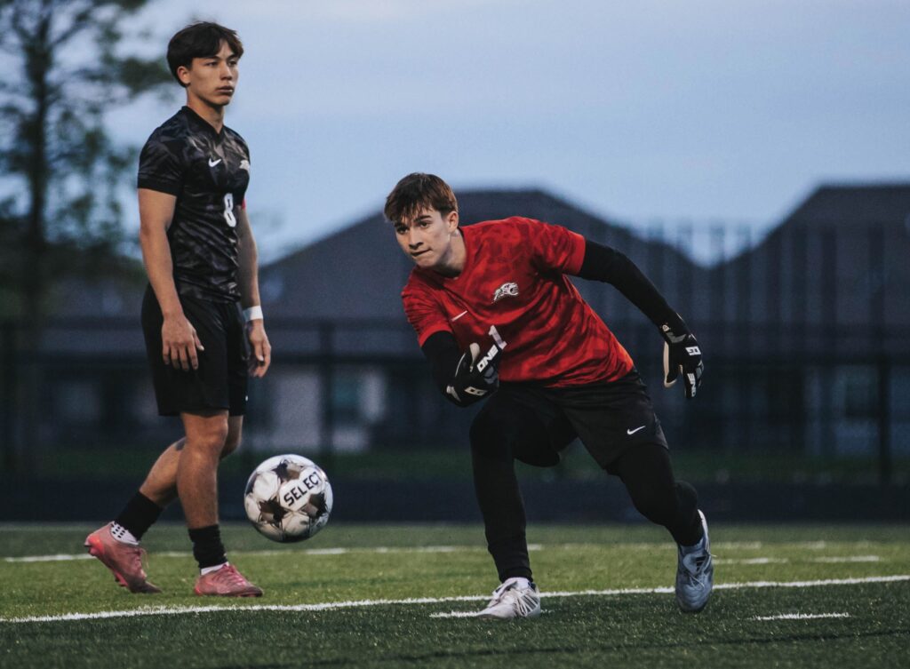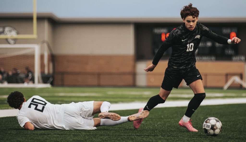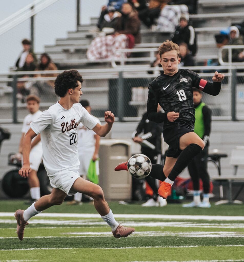 Just a few minutes into the match, Tate Duax stole the ball away from the Tigers, went on a run and found a trailing Brock Brazeau–who found the back of the net to give Centennial the early edge.